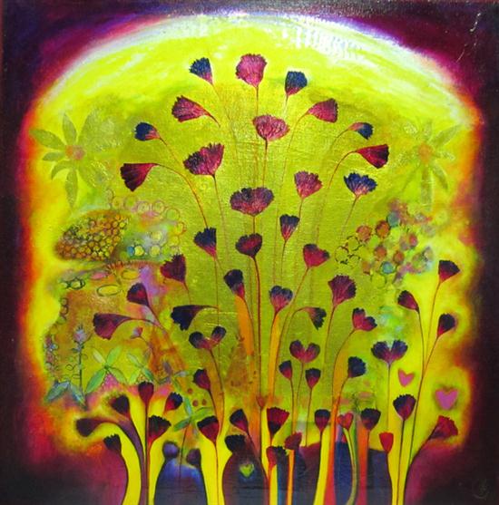 HELENE CARPENTER, "HOW DO YOU DO" OIL & GOLD LEAF ON LINEN, SIGNED, 60 CM X 60 CM