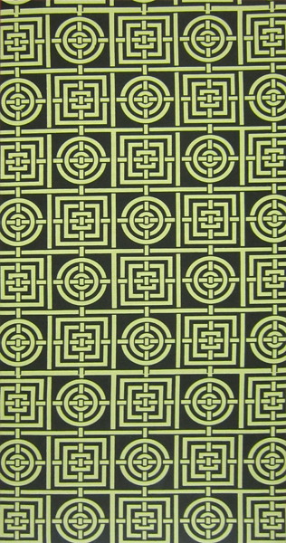 FLORENCE BROADHURST CIRCLES AND SQUARES PATTERNED MATERIAL ON STRETCHER,, 91 CM X 46 CM