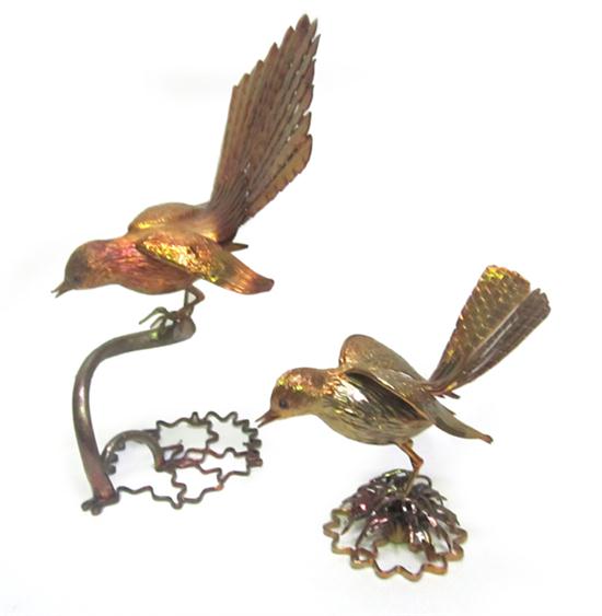RALPH WOODFORTH, TWO BIRD COPPER SCULPTURES, 27/13 CM HIGH.