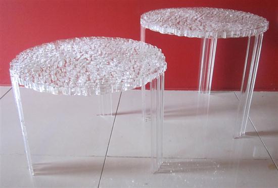 A PAIR OF CONTEMPORARY PERSPEX SIDE TABLES, ONE WITH SMALL REPAIR.