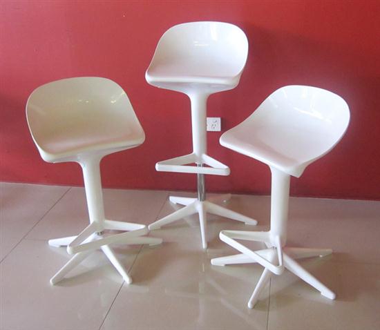 THREE WHITE COMPOSITE CONTEMPORARY BAR STOOLS.