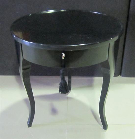 A BLACK SIDE TABLE, BY RALPH LAUREN FINE FURNITURE.