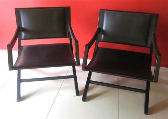 A PAIR OF WOOD & LEATHER EASY CHAIRS, BY MEDA ITALIA.