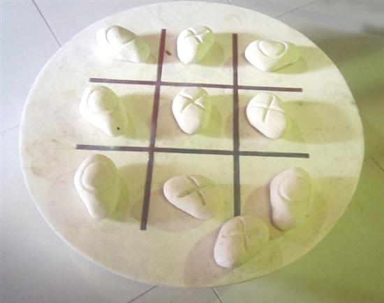 A CONTEMPORARY NAUGHTS & CROSSES STYLE STONE DISPLAY.