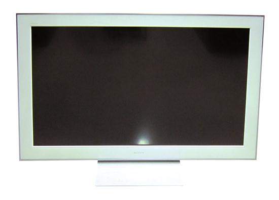 A SONY "BRAVIA" WHITE TELEVISION SET, 133CM / 52", COMES WITH ACCESSORIES & MEDIA RECEIVER.