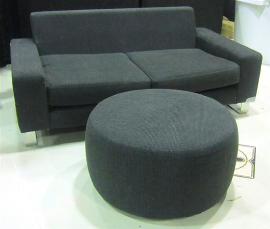 A TWO SEATER SOFA WITH FOOT STOOL.
