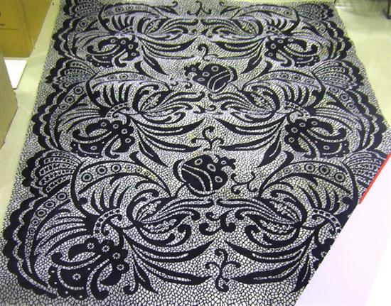 A WOOLLEN FLOOR RUG, 250 X 320CM, 100% NEW ZEALAND WOOL, 'BLACK LACE CUSTOM' SOME MARKS.