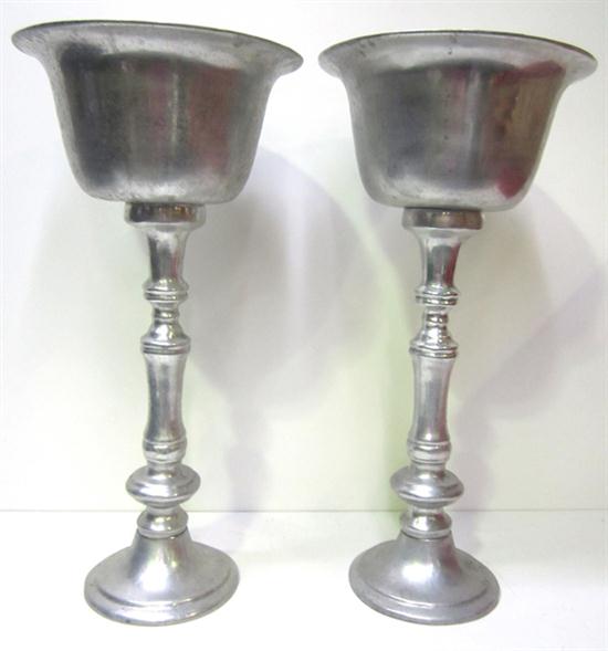 TWO SILVERED URNS.