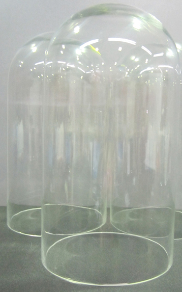 TWO CLEAR GLASS DOMES, 48 CM HIGH