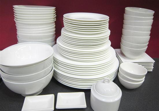 A VARIETY OF WHITE DINNER WARE INCLUDING WHEEL & BARROW.