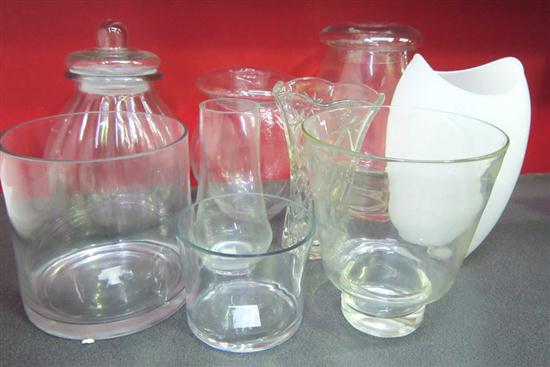 A VARIETY GLASSWARE INCLUDING VASES AND BOWLS.
