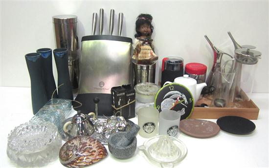 A SELECTION OF DECORATIVE HOMEWARES AND COFFEE ITEMS.