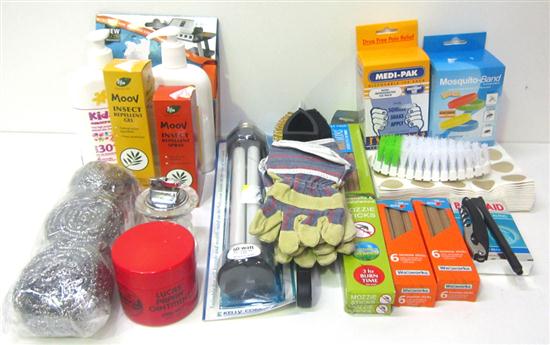 A VARIETY OF HOUSEHOLD CLEANING ITEMS.