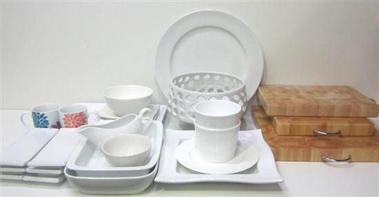 A SELECTION OF WHITE KITCHEN AND DINING WARE.