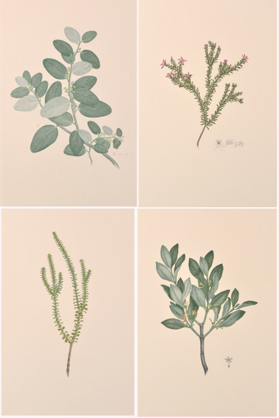 Four engravings from Banks' Florilegium (published 1980 from the botanical watercolours by Sydney Parkinson recording the plants collected by Joseph Banks and Dr Daniel Carl Solander)