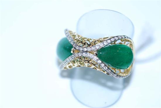 AN EMERALD AND DIAMOND DRESS RING IN 18CT GOLD, INDEPENDENT VALUATION AVAILABLE