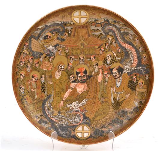 Detailed scene of the Immortals seizing control of pearls from dragons with double shimazu mon insignia