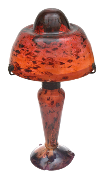 Mottled red with foil inclusions to base and shade