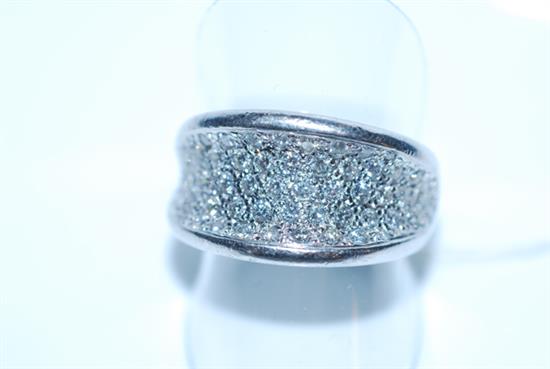 A DIAMOND DRESS RING - The wide concave band pave set with round brilliant cut diamonds totalling 1.65cts, in 18ct white gold, ring size R-S.