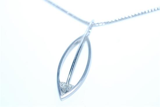 A DIAMOND PENDANT - Of stylised leaf design, set with a trilliant cut diamond weighing 0.63cts, in matt and polished finish to a foxtail link chain, in 18ct white gold.