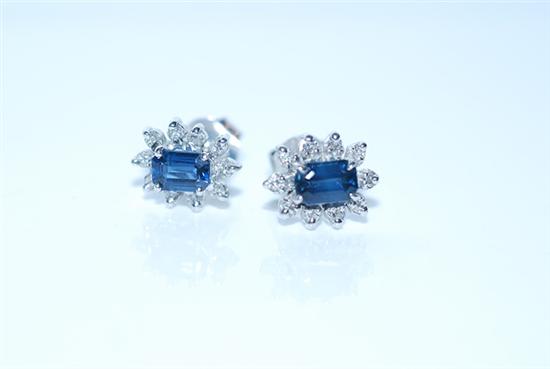 A PAIR OF SAPPHIRE CLUSTER EARRINGS IN 18CT WHITE GOLD