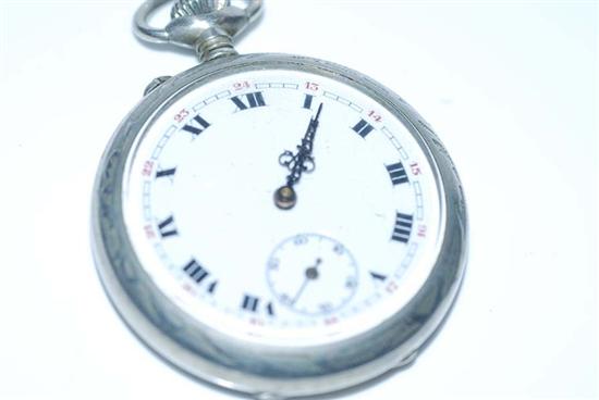 AN OPEN FACE POCKETWATCH TO SILVER CASE, CROWN WOUND PUSH PIECE SET