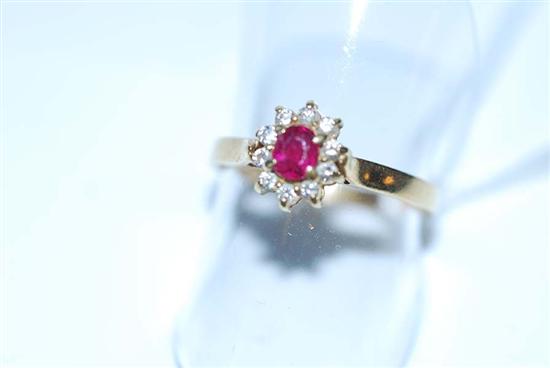 A RUBY AND DIAMOND CLUSTER RING IN 18CT GOLD