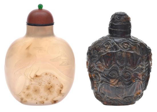 Low relief carving to front depicting mythical beasts verso calligraphy incised and rubbed with gold