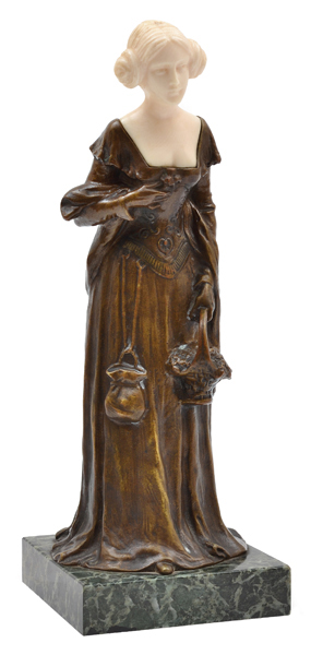 A BRONZE AND IVORY FIGURE ON MARBLE BASE*