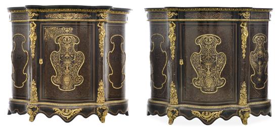 Each with a slate top, (chips to slate tops in places, losses and lifting to brass inlay in places), 131.5 x 113 x 45.5cm.