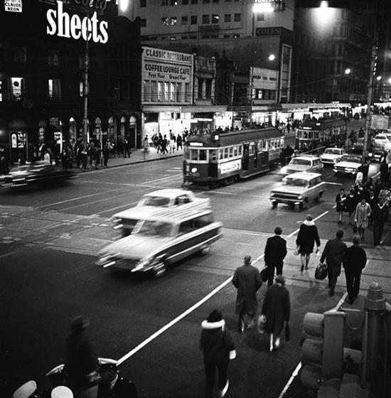 Crossing Swanston Street at Night