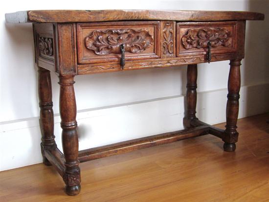 WITH ALL ROUND CARVING TURNED LEGS AND STRETCHER BASE