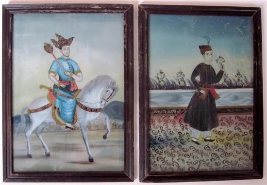 One depicting a Maharajah on horseback, the other depicting a man in traditional Indian dress, in ebony frames