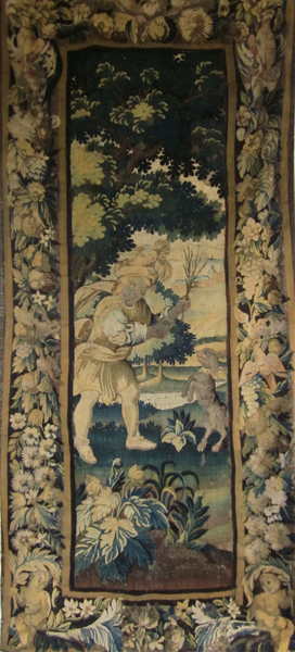DEPICTING A WOODLAND SCENE WITHIN A FLORAL AND FAUNAL BORDER