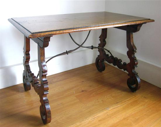 WITH CARVED SUPPORTS AND IRON STRETCHER