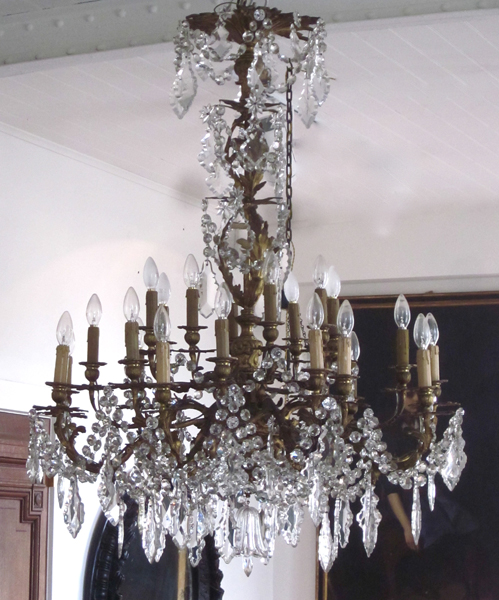 A LARGE 19TH CENTURY FRENCH HEXAGONAL WROUGHT IRON LANTERNMANUFACTURERS MARK FOR LOUIS TELLERAINE / LILLE