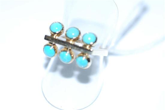 A TURQUOISE SET DRESS RING IN 9CT GOLD