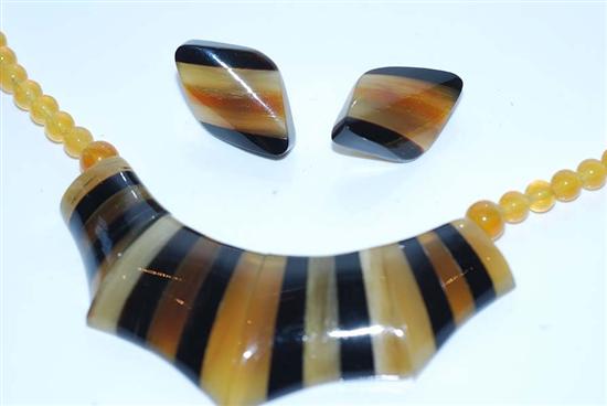 A SUITE OF BULL HORN JEWELLERY INCLUDING NECKLACE AND EARRINGS