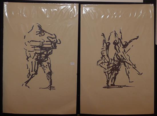 PRO HART, FIGURE BY THE LAKE, OIL ON PAPER, 19.5 X 49CM