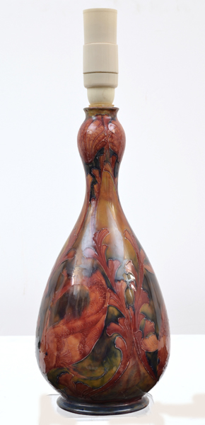 Drilled to lower section of the body, substantial chip to rim, modern light fitting, 30.5cm high