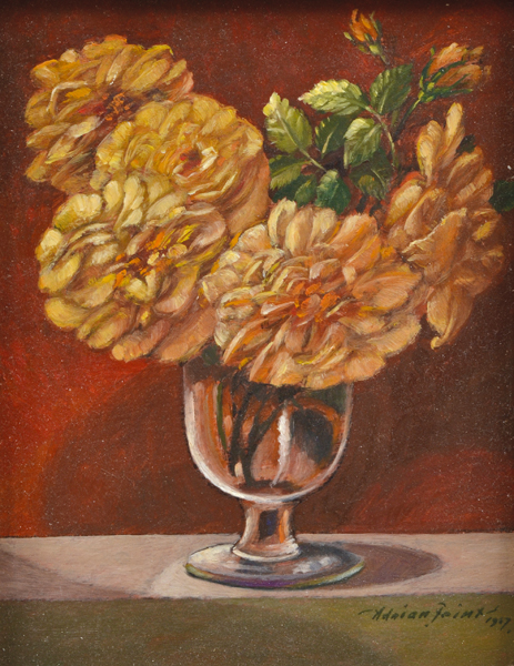 MARGARET OLLEY (1923-2011) Marigolds 1973 oil on board