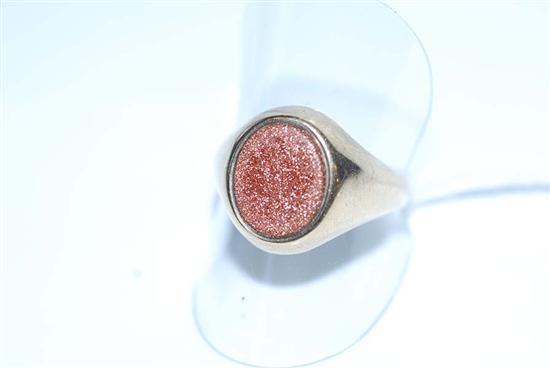 A GOLDSTONE SET SIGNET RING IN 9CT GOLD