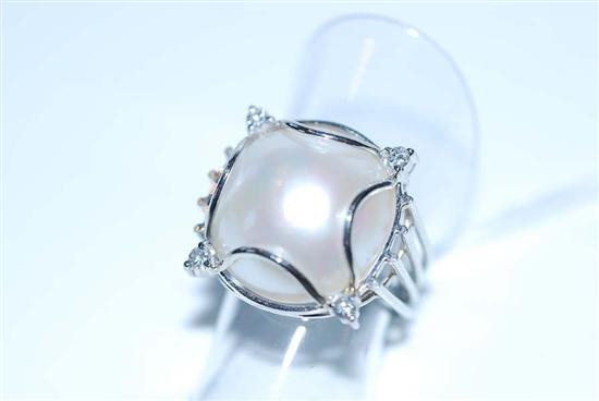 A MABE PEARL AND DIAMOND DRESS RING IN 18CT WHITE GOLD
