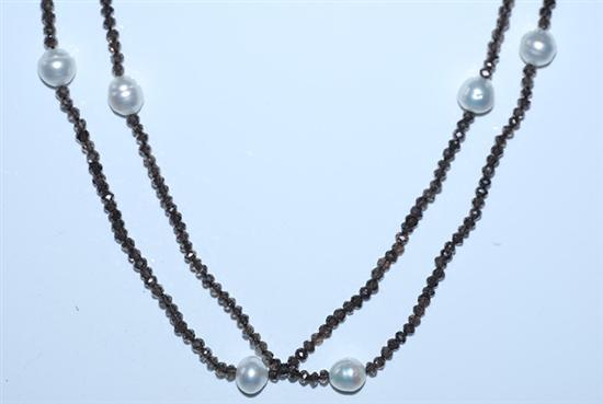 A SMOKEY QUARTZ BEAD AND SOUTH SEA PEARL NECKLACE