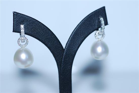 A PAIR OF SOUTH SEA PEARL AND DIAMOND EARRINGS