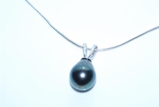 A TAHITIAN PEARL AND DIAMOND PENDANT IN 18CT WHITE GOLD