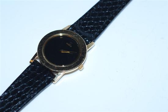 A NOBLIA LADIES WRISTWATCH TO GOLD PLATED CASE AND LEATHER BANDS