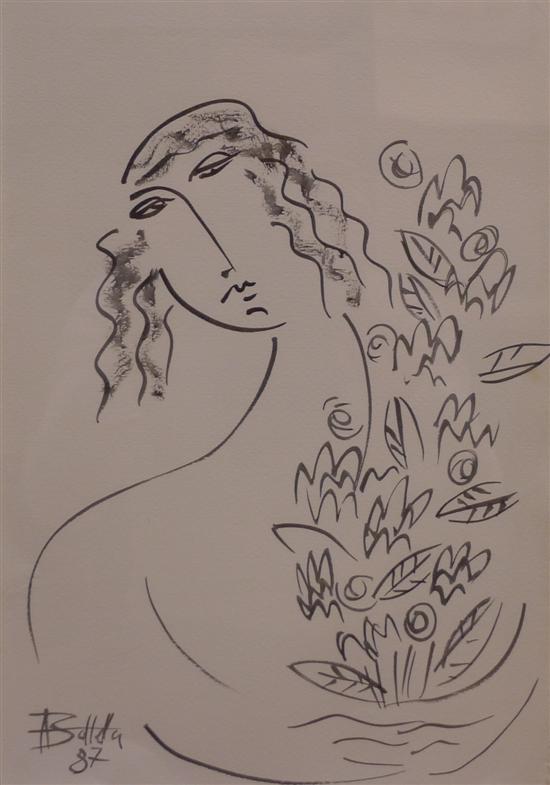 ANTONIO BALLETTA, PORTRAIT OF A LADY, INK ON PAPER, 35 X 25CM