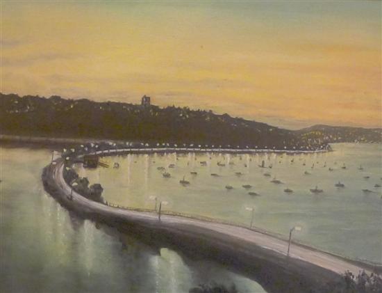 DOREEN CURRAN, HARBOUR AT EVENING, OIL ON CANVAS BOARD