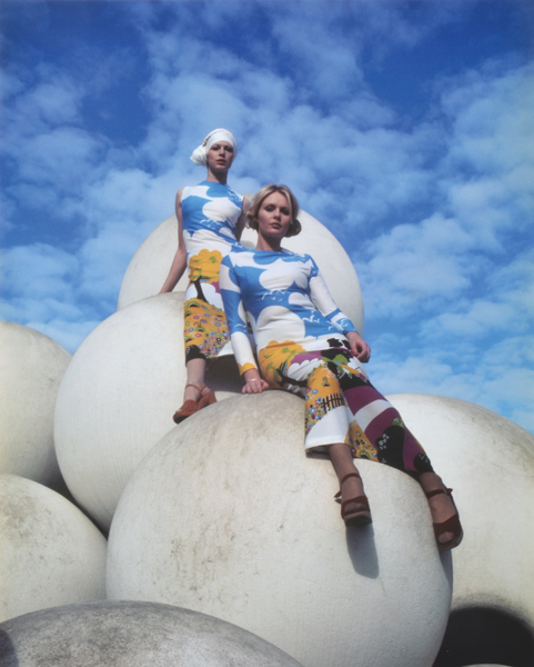 Models Jenny McKenzie and Nola Clark model Sportsgirl Dresses, National Gallery of Victoria 1972